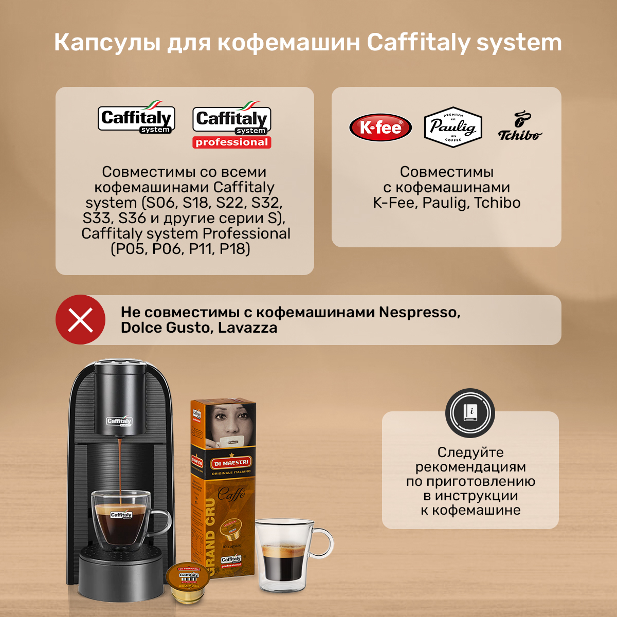 Герметичные капсулы из безопасного пищевого пластика для кофемашины Caffitaly с двумя мембранами сохраняют насыщенный вкус, аромат и свежесть кофе. Нижняя мембрана способствует получению плотной пенки-крема. Великолепные капсулы кофе от Ди Маестри воплощают мечты о настоящем кофе от лучших мастеров бариста.