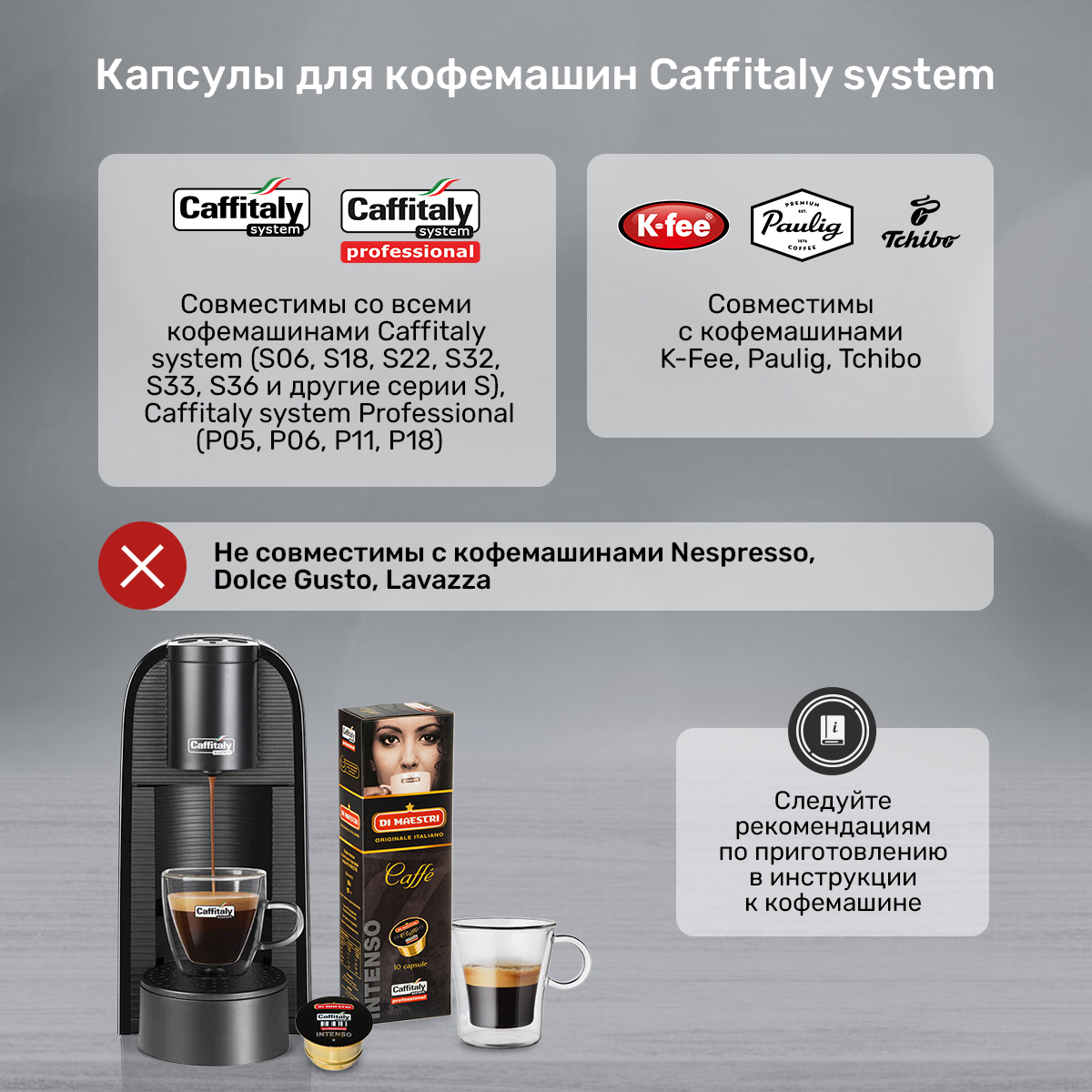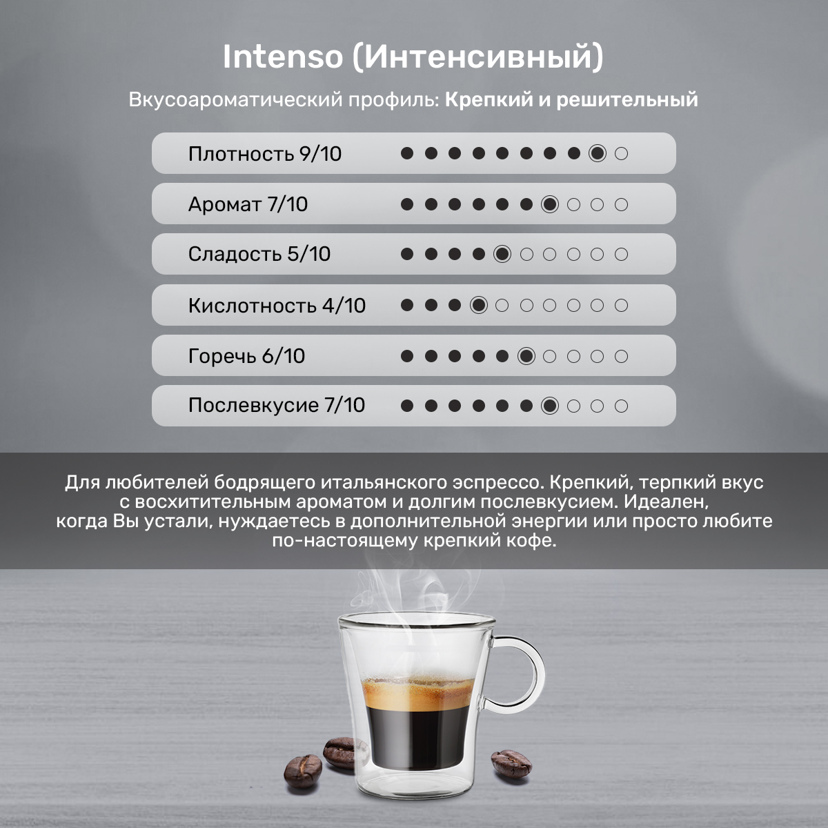 Капсулы для кофемашины Caffitaly Intenso — интенсивный, терпкий, крепкий с пряным ароматом и шоколадными нотками.